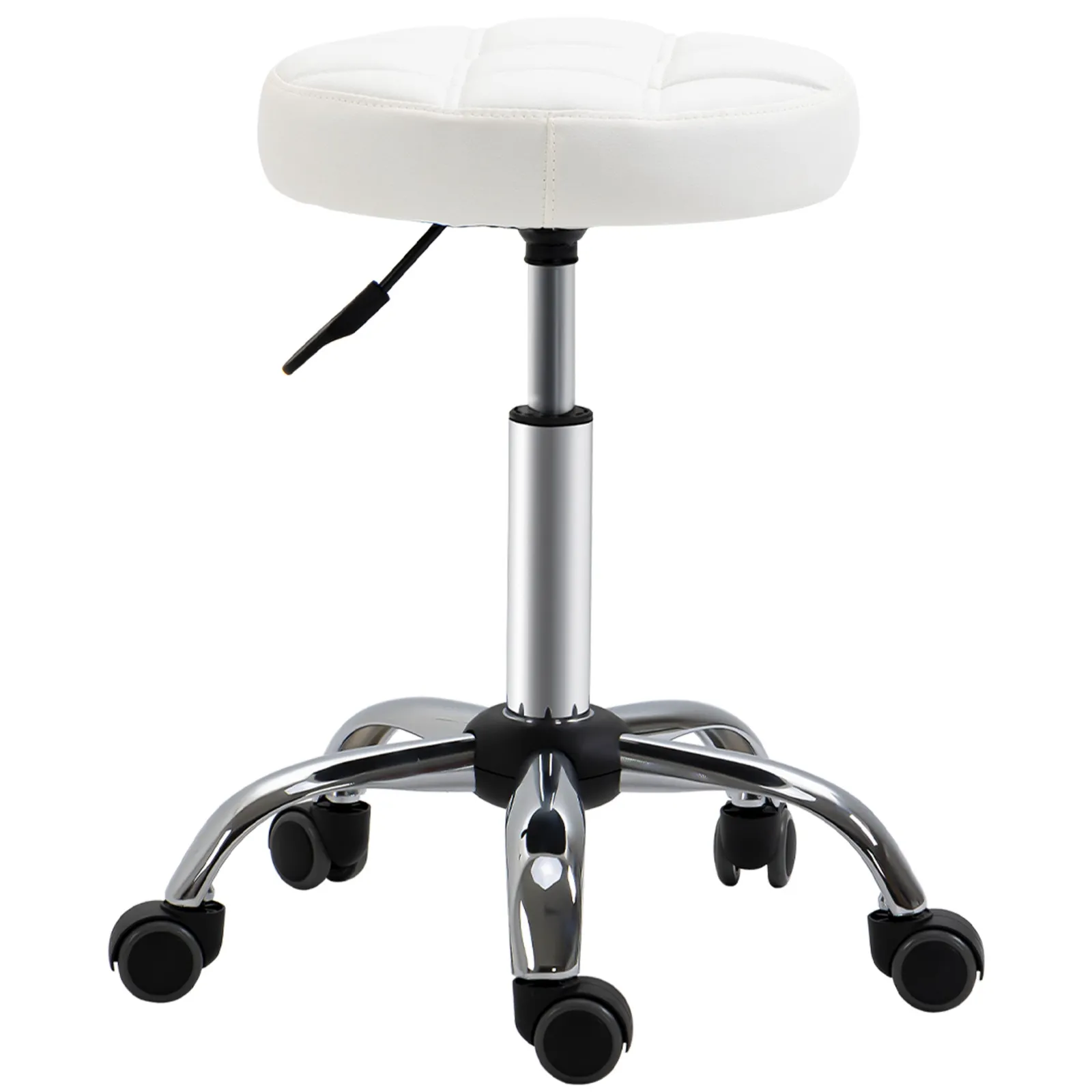 White Beauty | Tattoo Round Swivel Stool with Wheels, Adjustable Height and Eco Leather Cover, Black