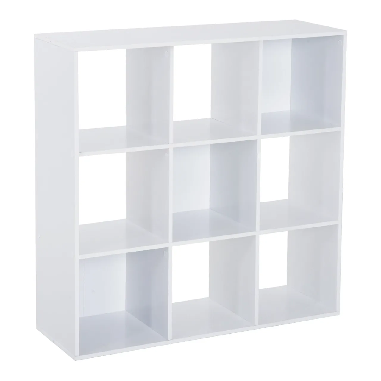 - • 9 cube-shaped shelves