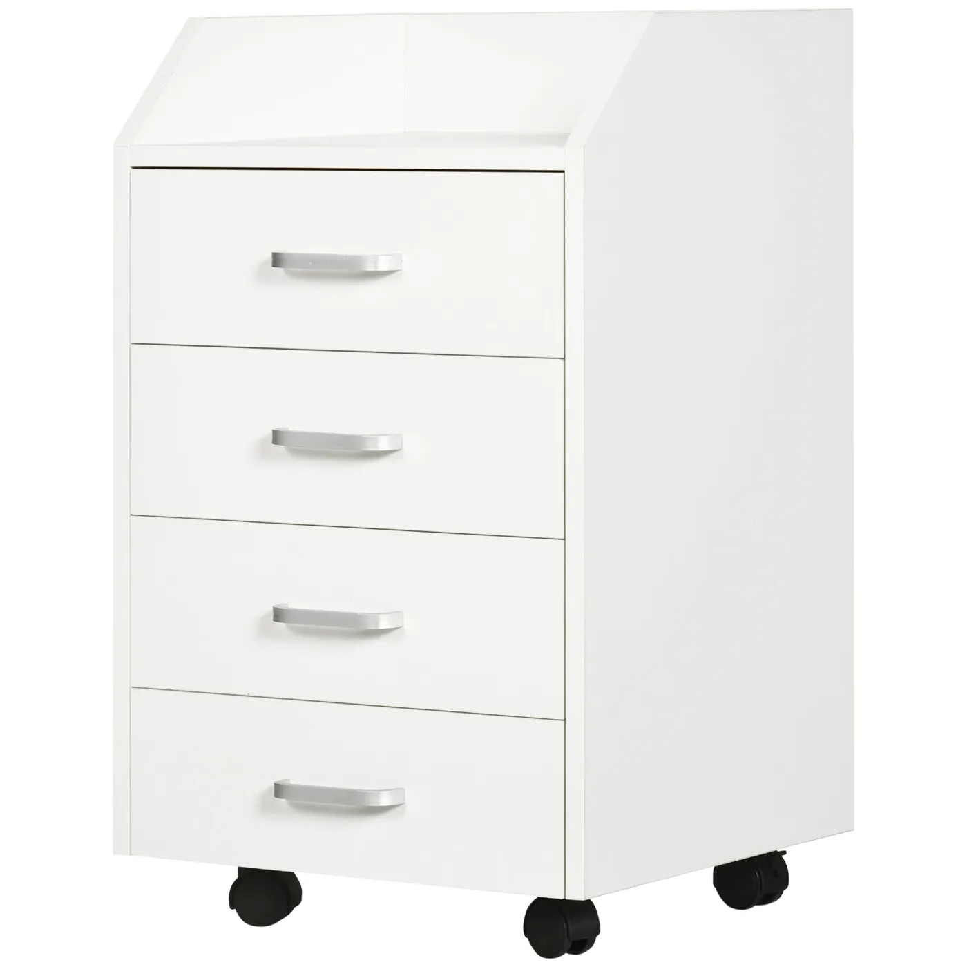 Wooden Office Chest with 4 Drawers, Wheels and Raised Edges, 40x36x65cm, White