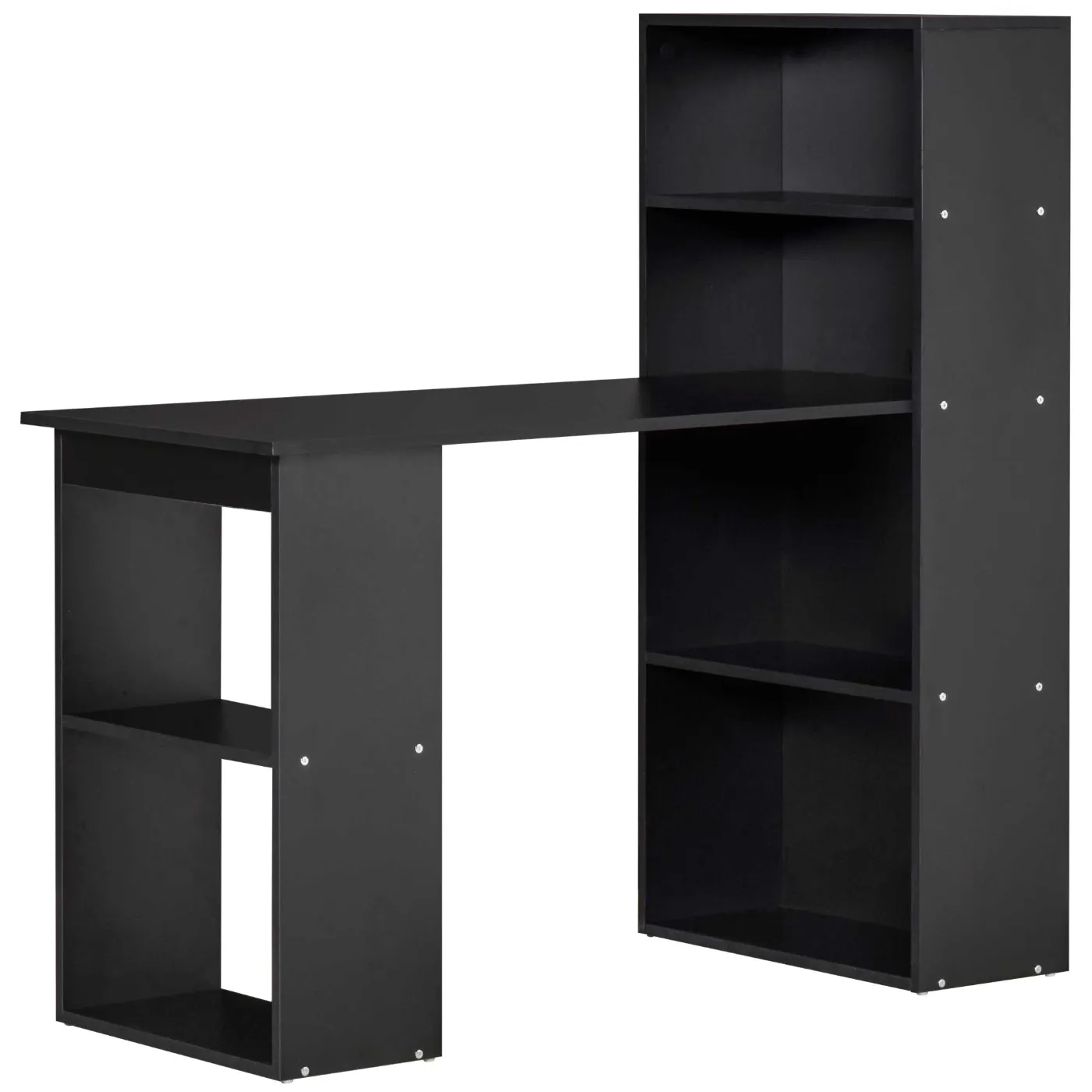 Wooden PC Desk with 6 Side Storage Shelves, 120x55x120 cm, Black